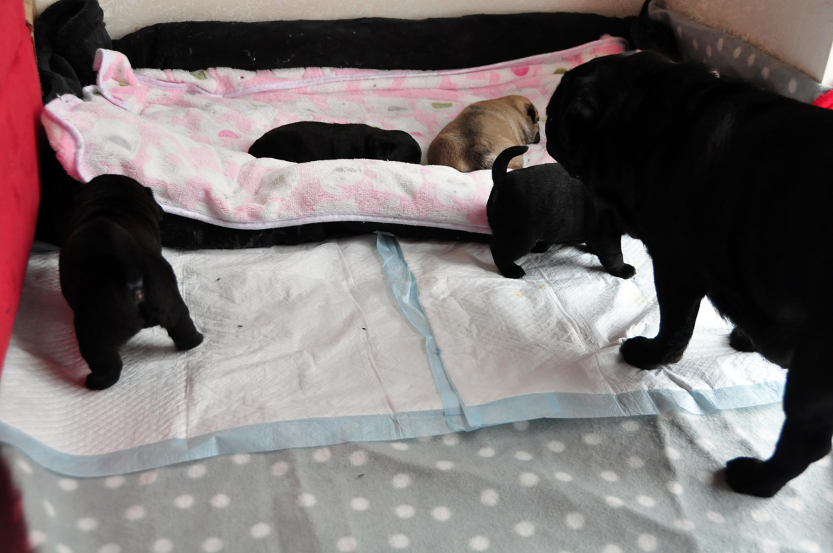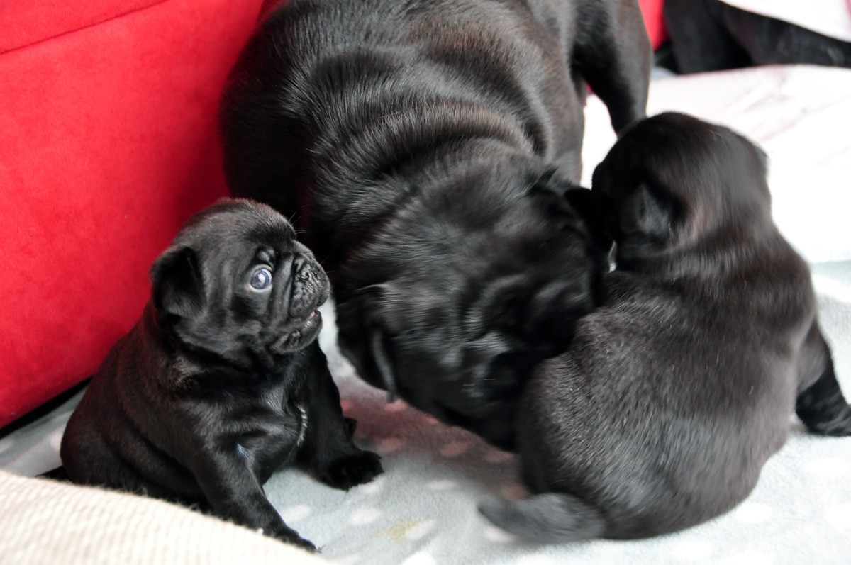Am 4. September 2019 brachte Mama Loki vier Welpen zur Welt: eine beige Hündin, zwei schwarze Hündinnen und ein schwarzer Rude.