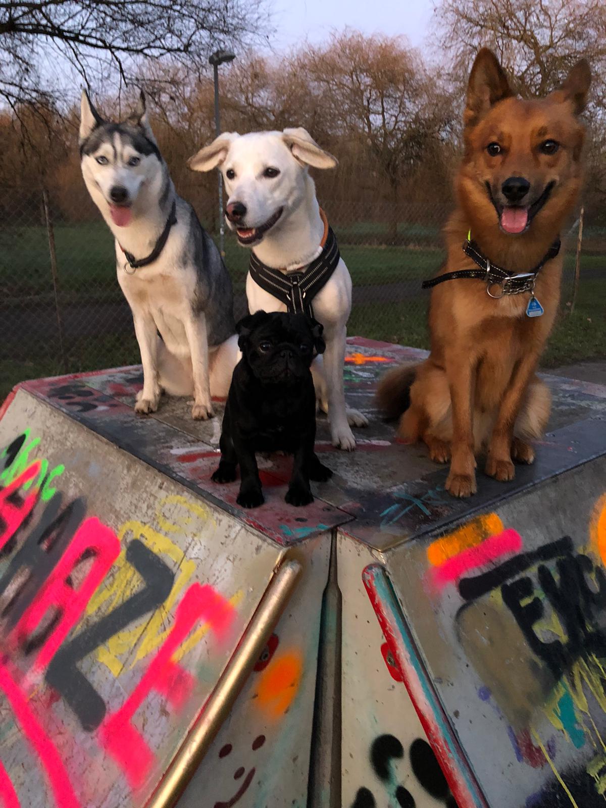 Amore hat sich mit Husky Akira und Mops Carlos befreundet.